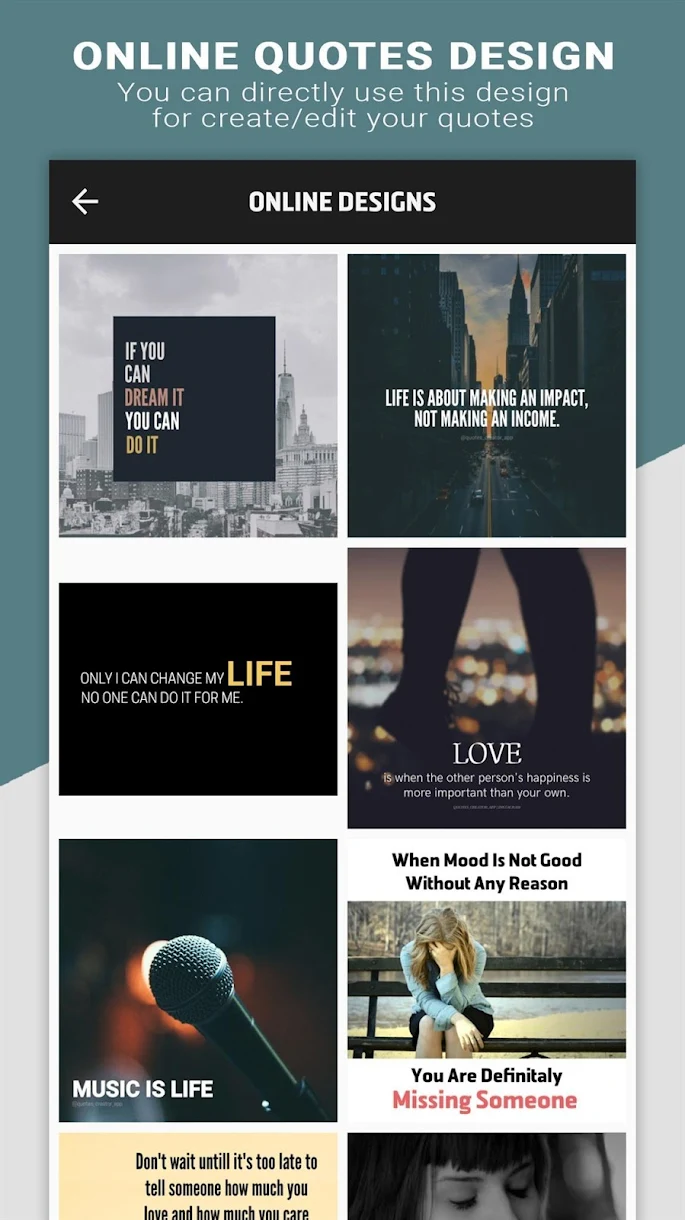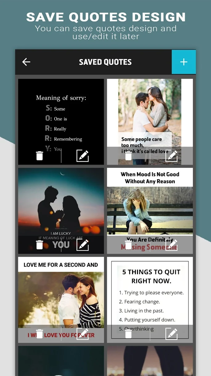 We made this app specially for the people who creates their own quotes. People with lot of imagination and creativity can just download the app and start creating their quotes. We made it simple for them so they don't need to worry about creating great quote.